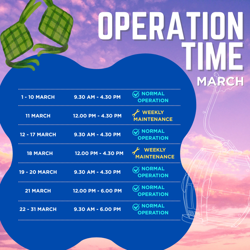 The SkyCab operation calendar is subject to change without prior notice. Visitor is encourage to check this calendar frequently or contact us directly for further information.
